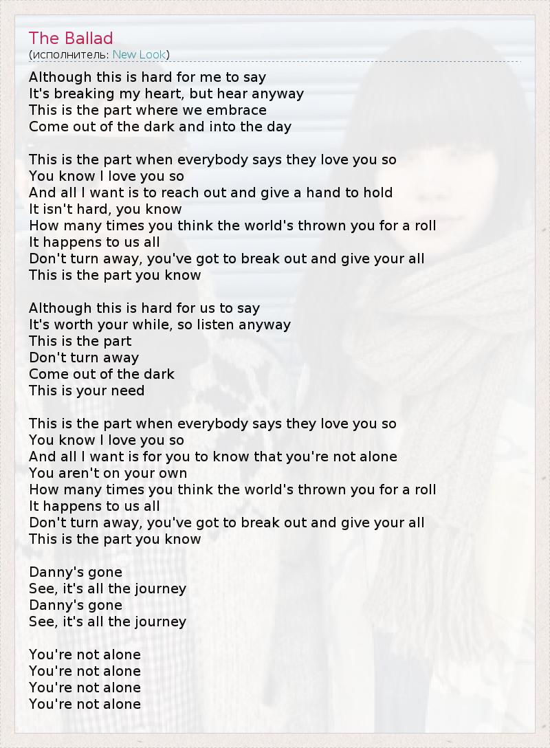 А как ты думаешь, о чем песня "The Ballad" ?