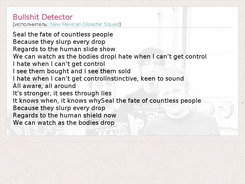 А как ты думаешь, о чем песня "Bullshit Detector" ?