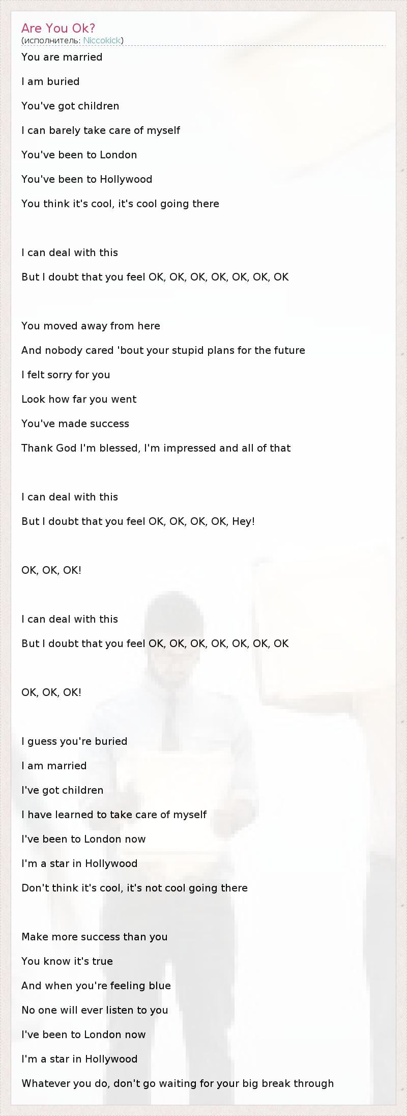 А как ты думаешь, о чем песня "Are You Ok?" ?