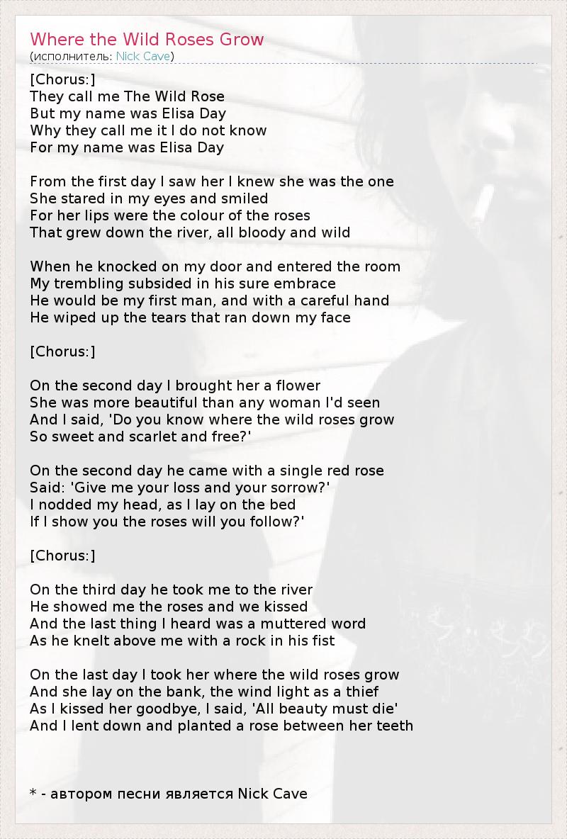 А как ты думаешь, о чем песня "Where the Wild Roses Grow" ?