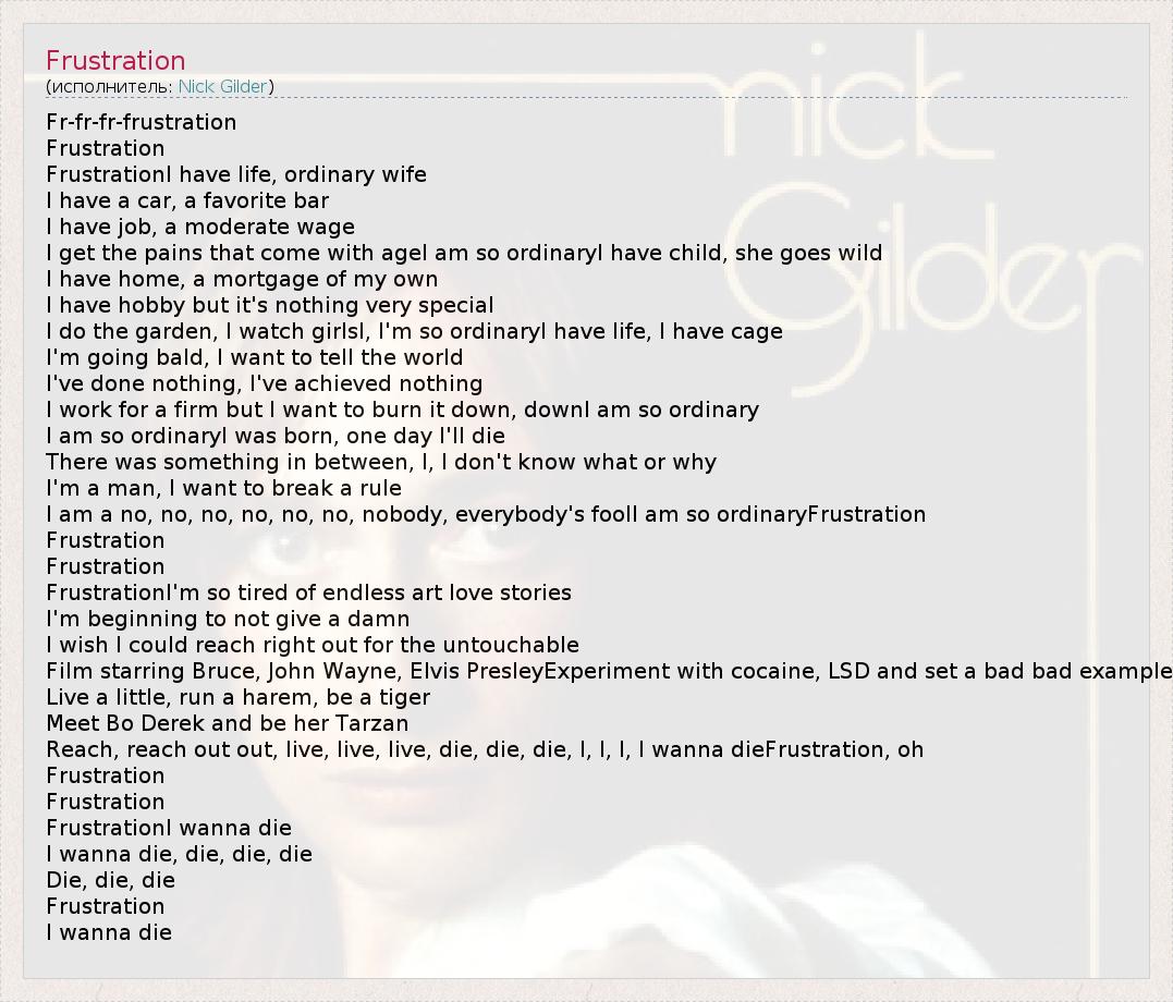 Reach, reach out out, live, live, live, die, die, die, I, I, I, I wanna dieFrustration, oh