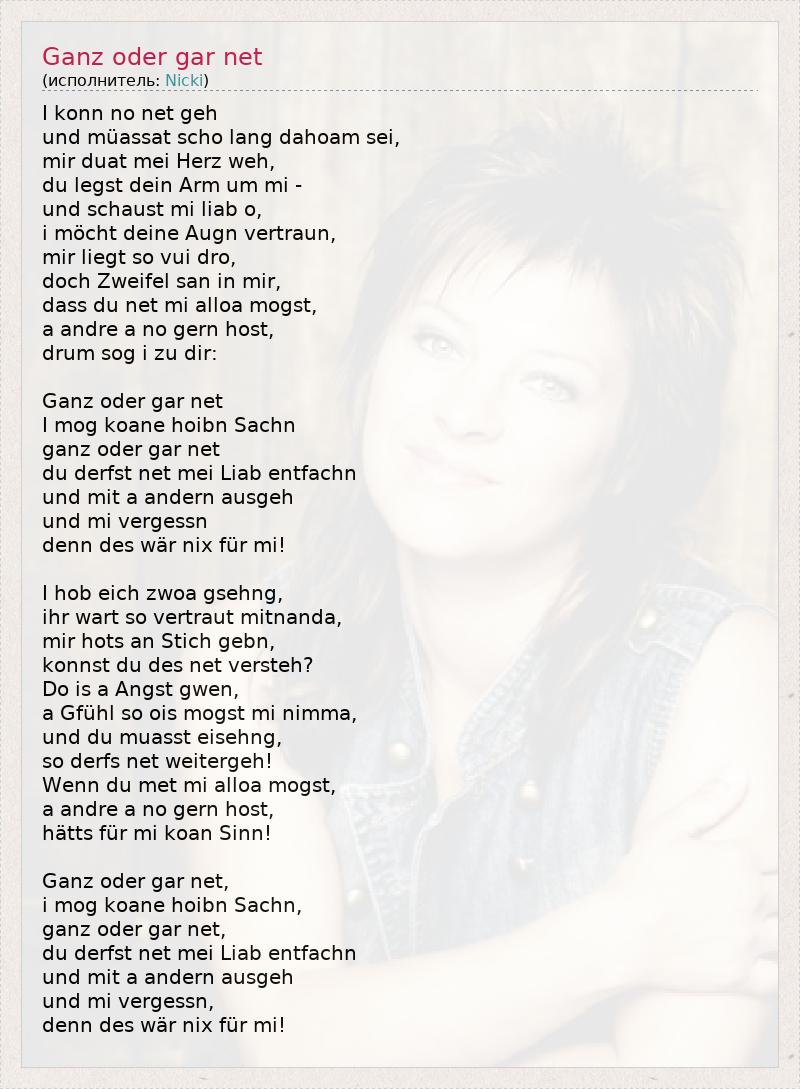 А как ты думаешь, о чем песня "Ganz oder gar net" ?
