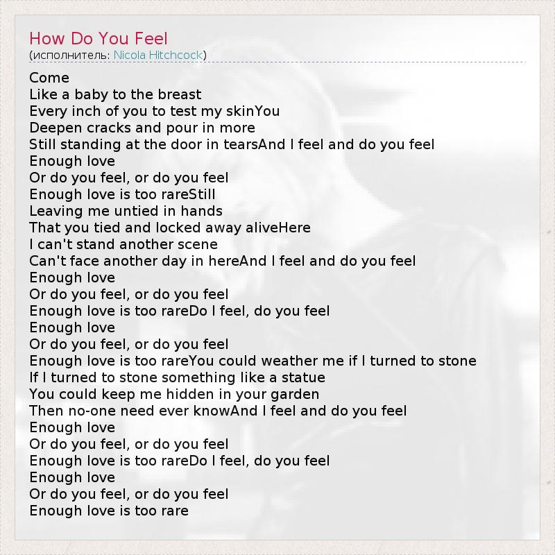 А как ты думаешь, о чем песня "How Do You Feel" ?