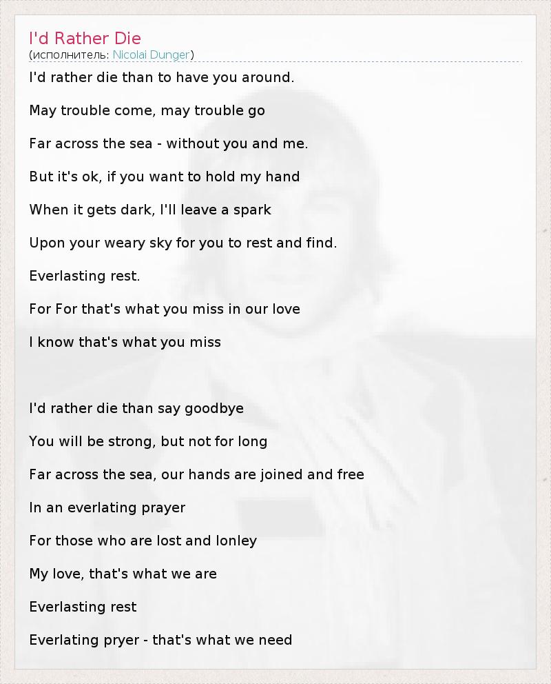 А как ты думаешь, о чем песня "I'd Rather Die" ?
