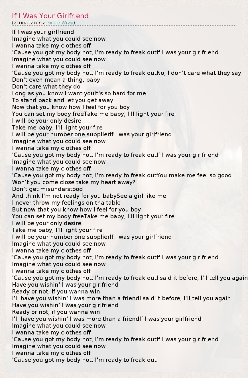 'Cause you got my body hot, I'm ready to freak outIf I was your girlfriend