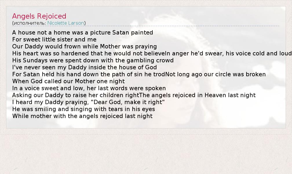 А как ты думаешь, о чем песня "Angels Rejoiced" ?