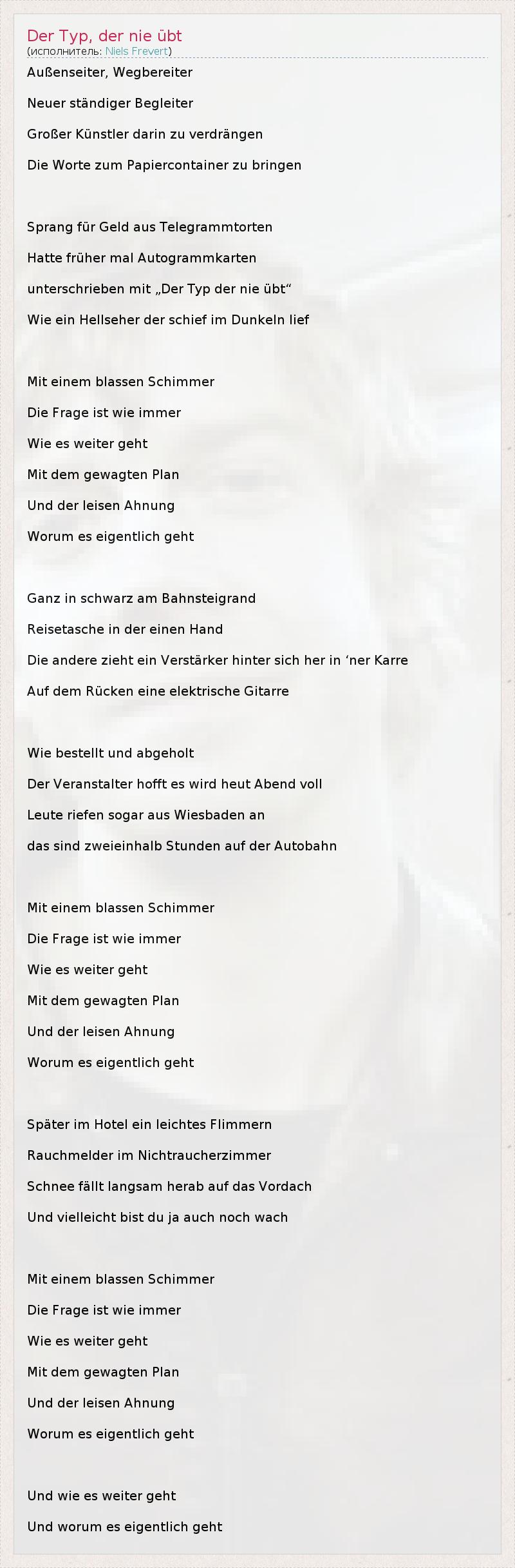 А как ты думаешь, о чем песня "Der Typ, der nie übt" ?