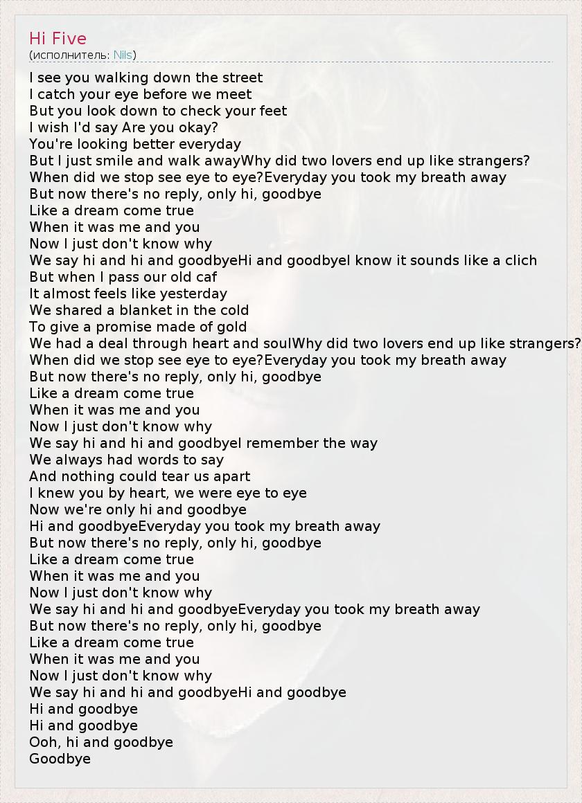 We say hi and hi and goodbyeHi and goodbyeI know it sounds like a clich