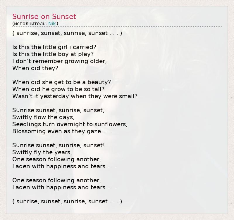 А как ты думаешь, о чем песня "Sunrise on Sunset" ?