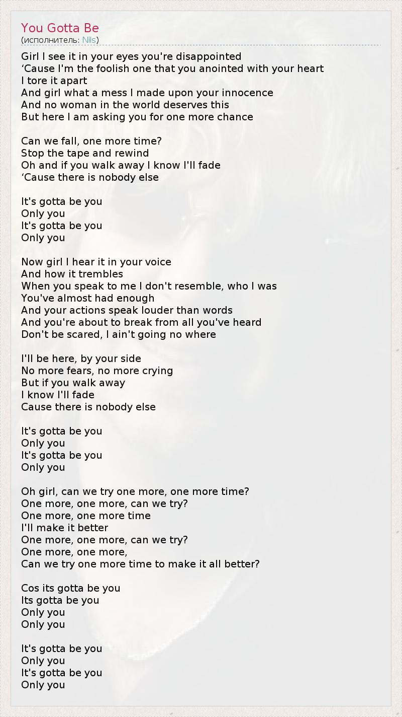 А как ты думаешь, о чем песня "You Gotta Be" ?