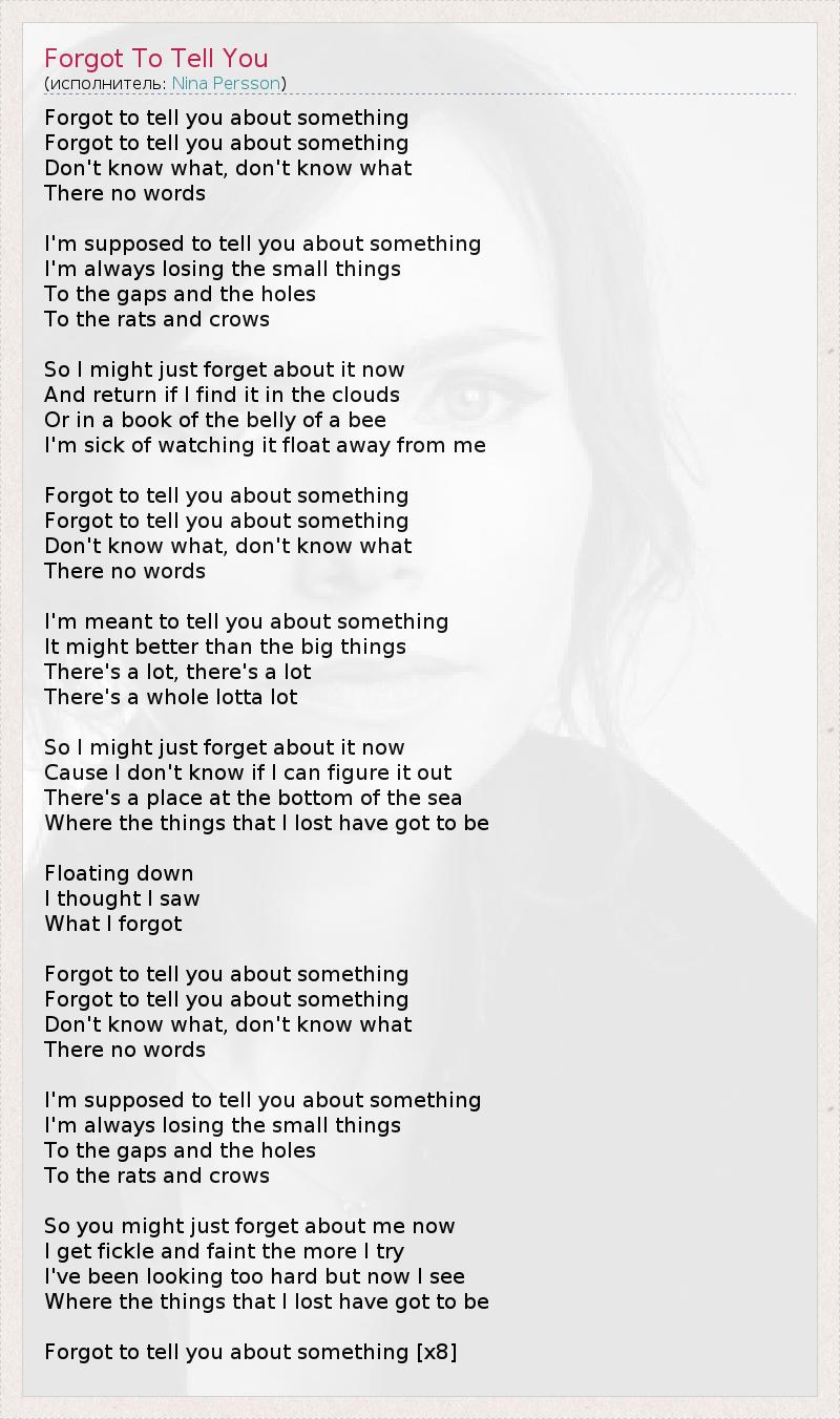 А как ты думаешь, о чем песня "Forgot To Tell You" ?