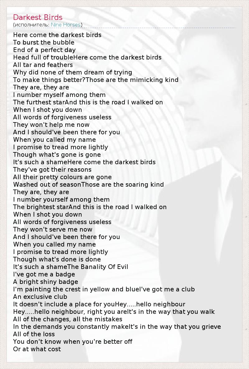 А как ты думаешь, о чем песня "Darkest Birds" ?