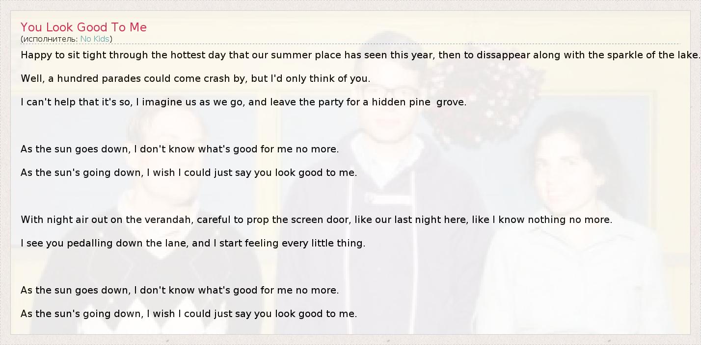 А как ты думаешь, о чем песня "You Look Good To Me" ?