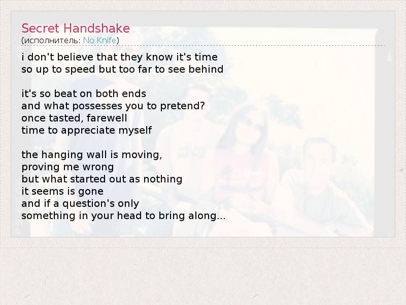 А как ты думаешь, о чем песня "Secret Handshake" ?