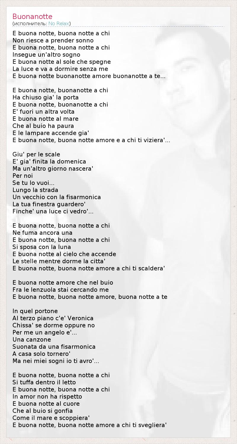 А как ты думаешь, о чем песня "Buonanotte" ?