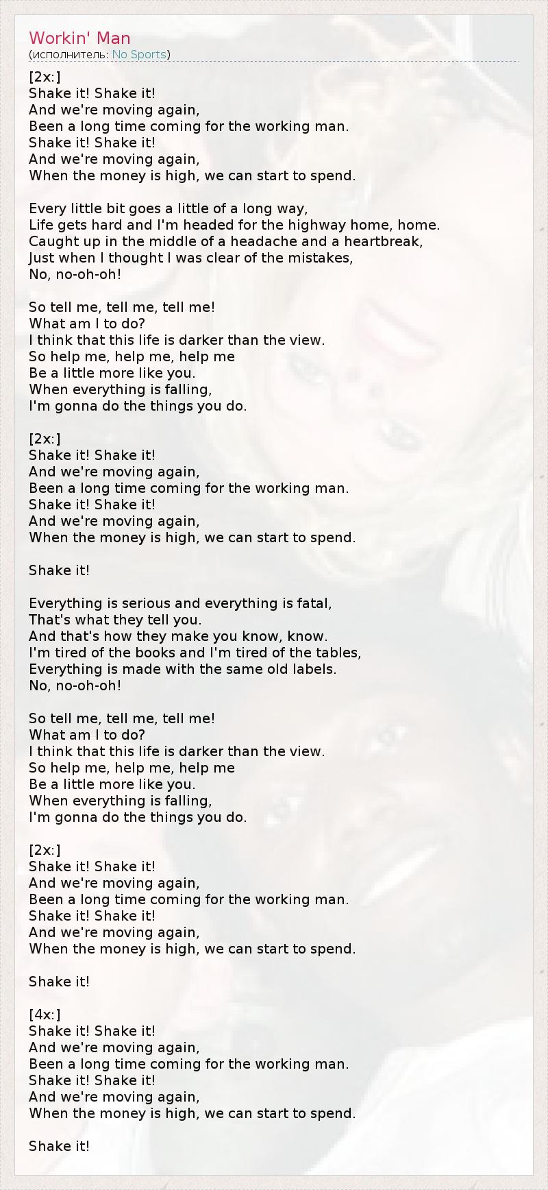 А как ты думаешь, о чем песня "Workin' Man" ?