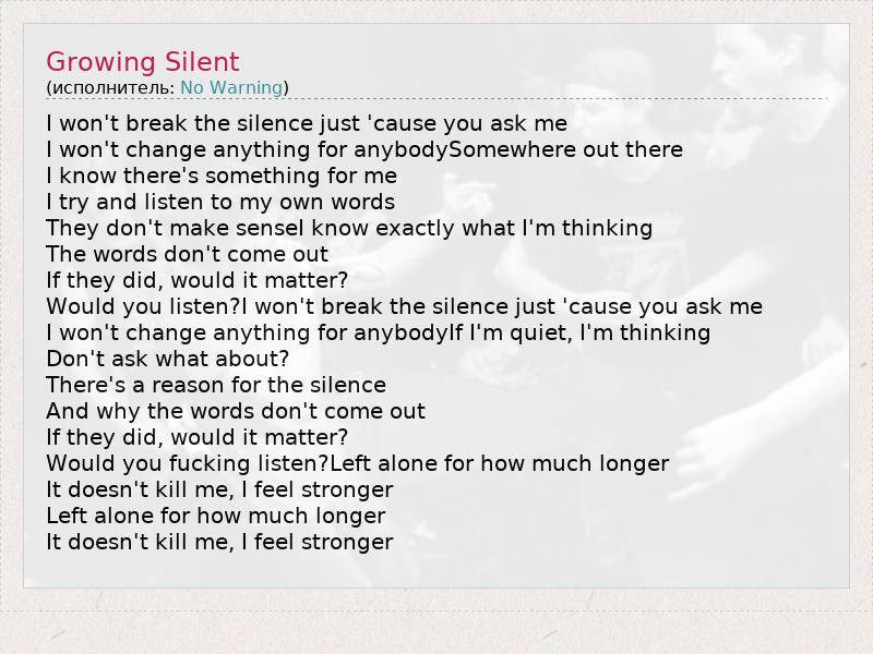 Would you listen?I won't break the silence just 'cause you ask me