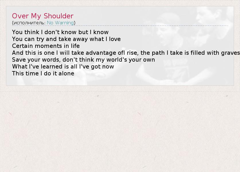 А как ты думаешь, о чем песня "Over My Shoulder" ?