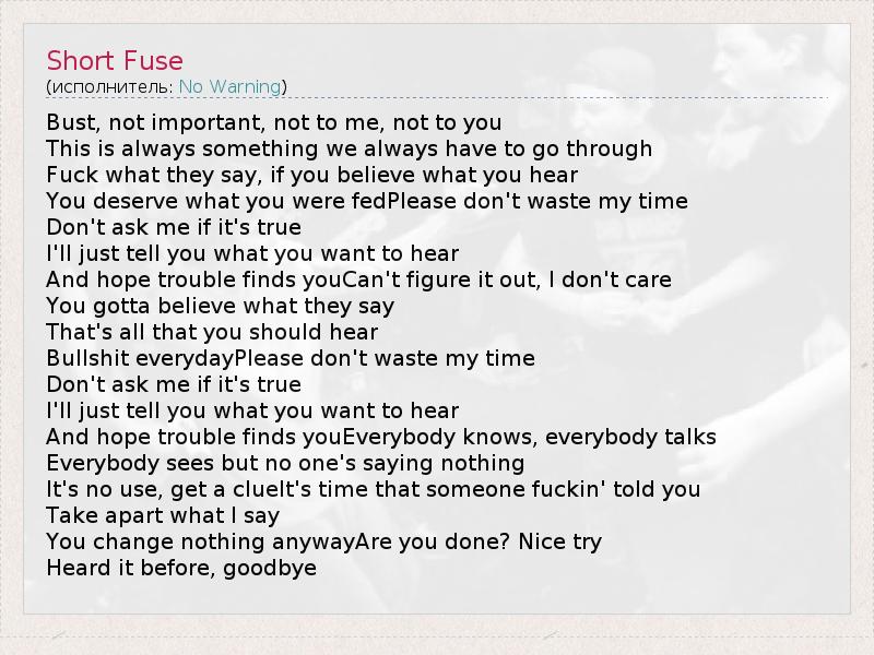 А как ты думаешь, о чем песня "Short Fuse" ?