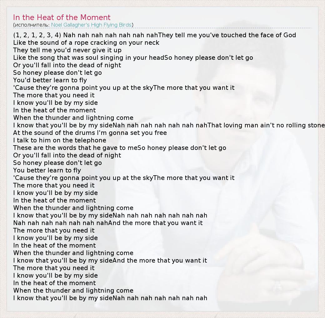 А как ты думаешь, о чем песня "In the Heat of the Moment" ?