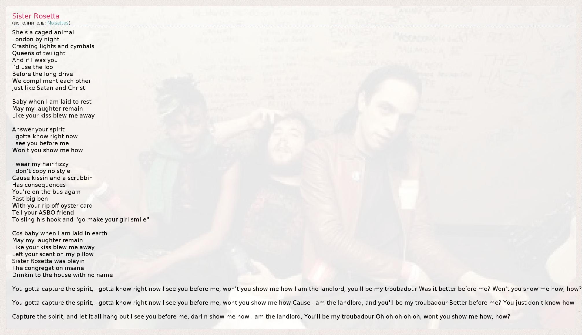 А как ты думаешь, о чем песня "Sister Rosetta" ?