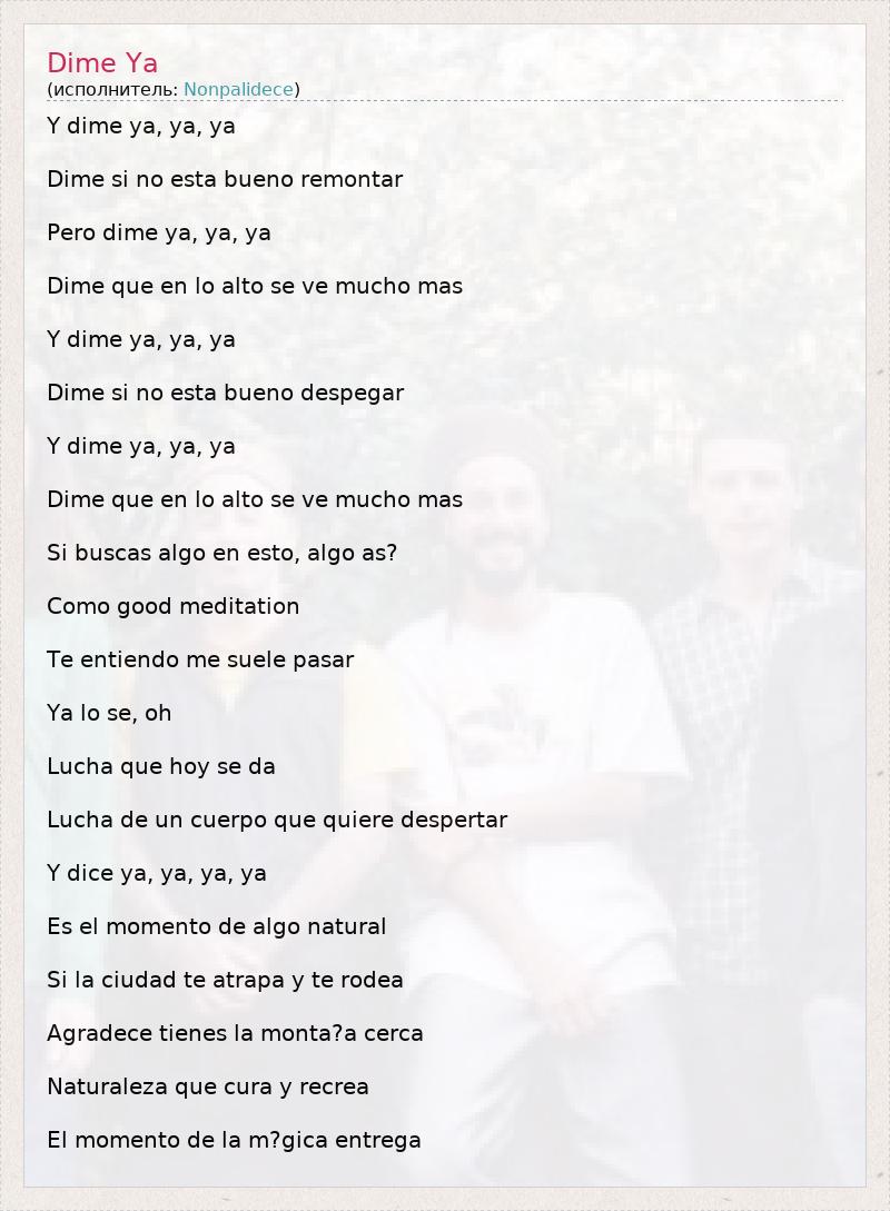 А как ты думаешь, о чем песня "Dime Ya" ?