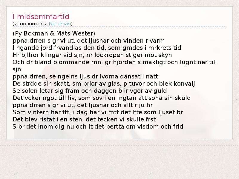 А как ты думаешь, о чем песня "I midsommartid" ?