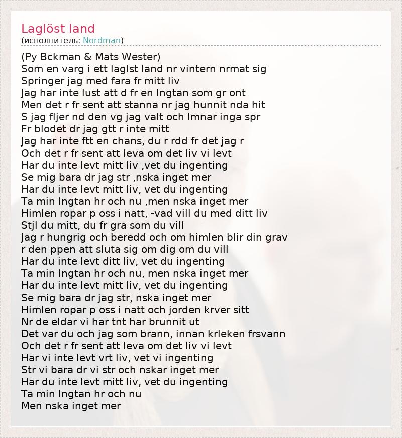 А как ты думаешь, о чем песня "Laglöst land" ?