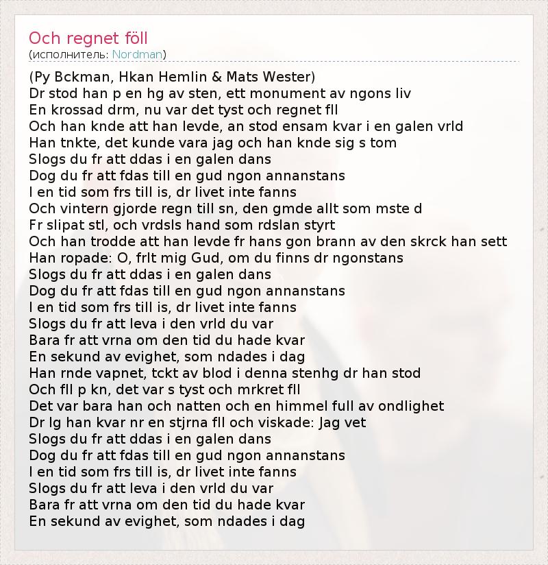 А как ты думаешь, о чем песня "Och regnet föll" ?