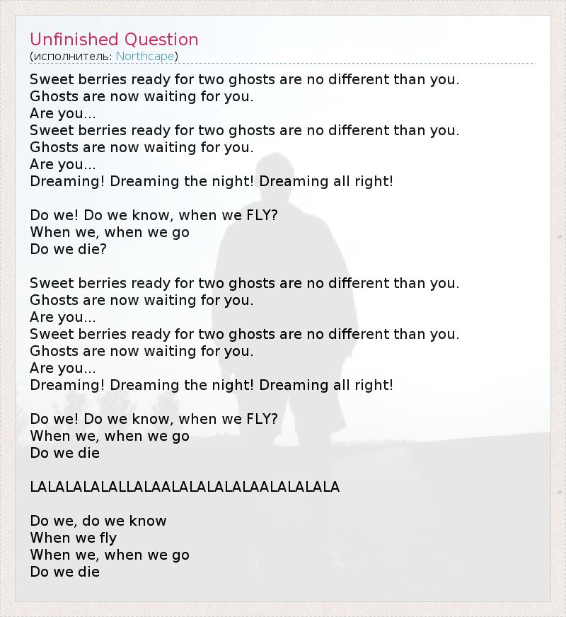А как ты думаешь, о чем песня "Unfinished Question" ?