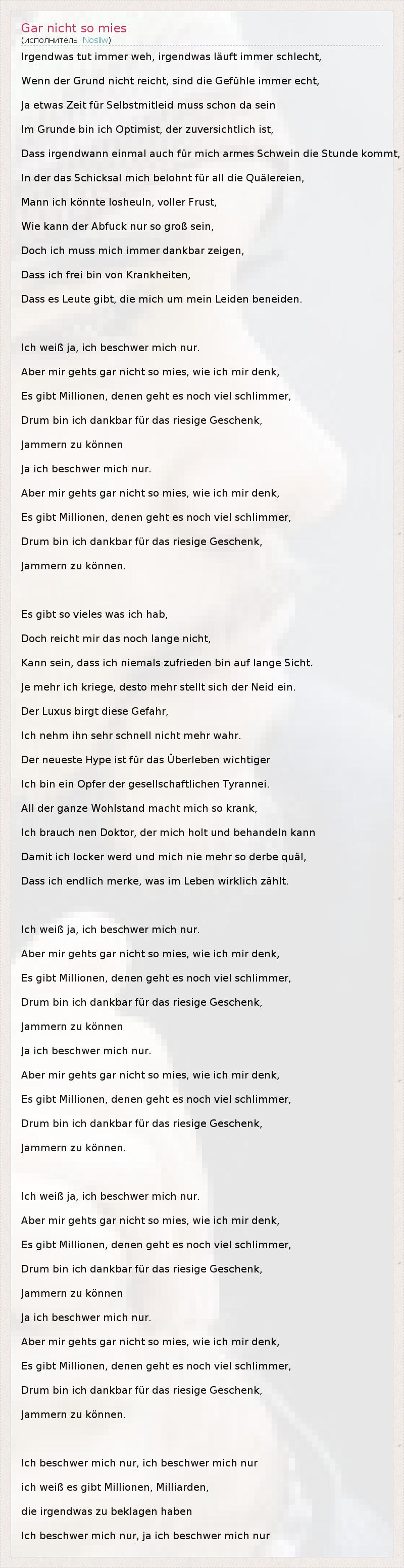 А как ты думаешь, о чем песня "Gar nicht so mies" ?