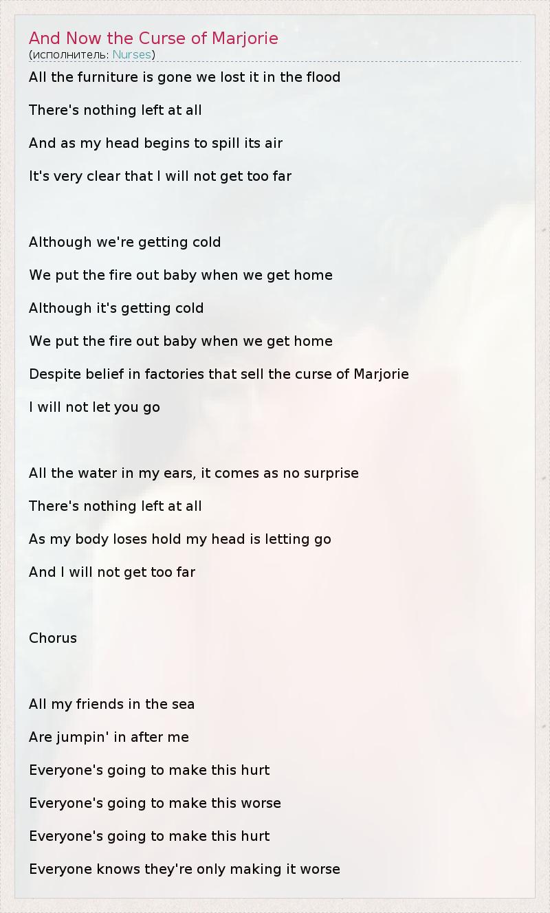 А как ты думаешь, о чем песня "And Now the Curse of Marjorie" ?