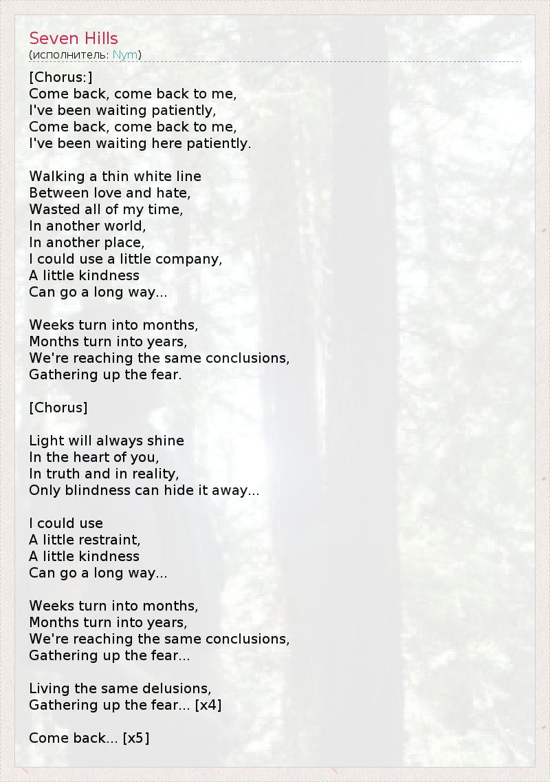 А как ты думаешь, о чем песня "Seven Hills" ?