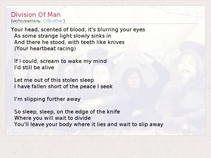 А как ты думаешь, о чем песня "Division Of Man" ?