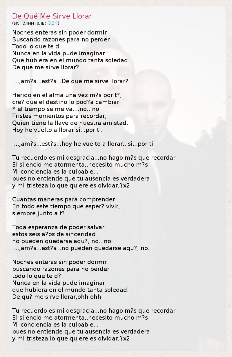 ГлавнаяИсполнителиOBKDe Qué Me Sirve Llorar