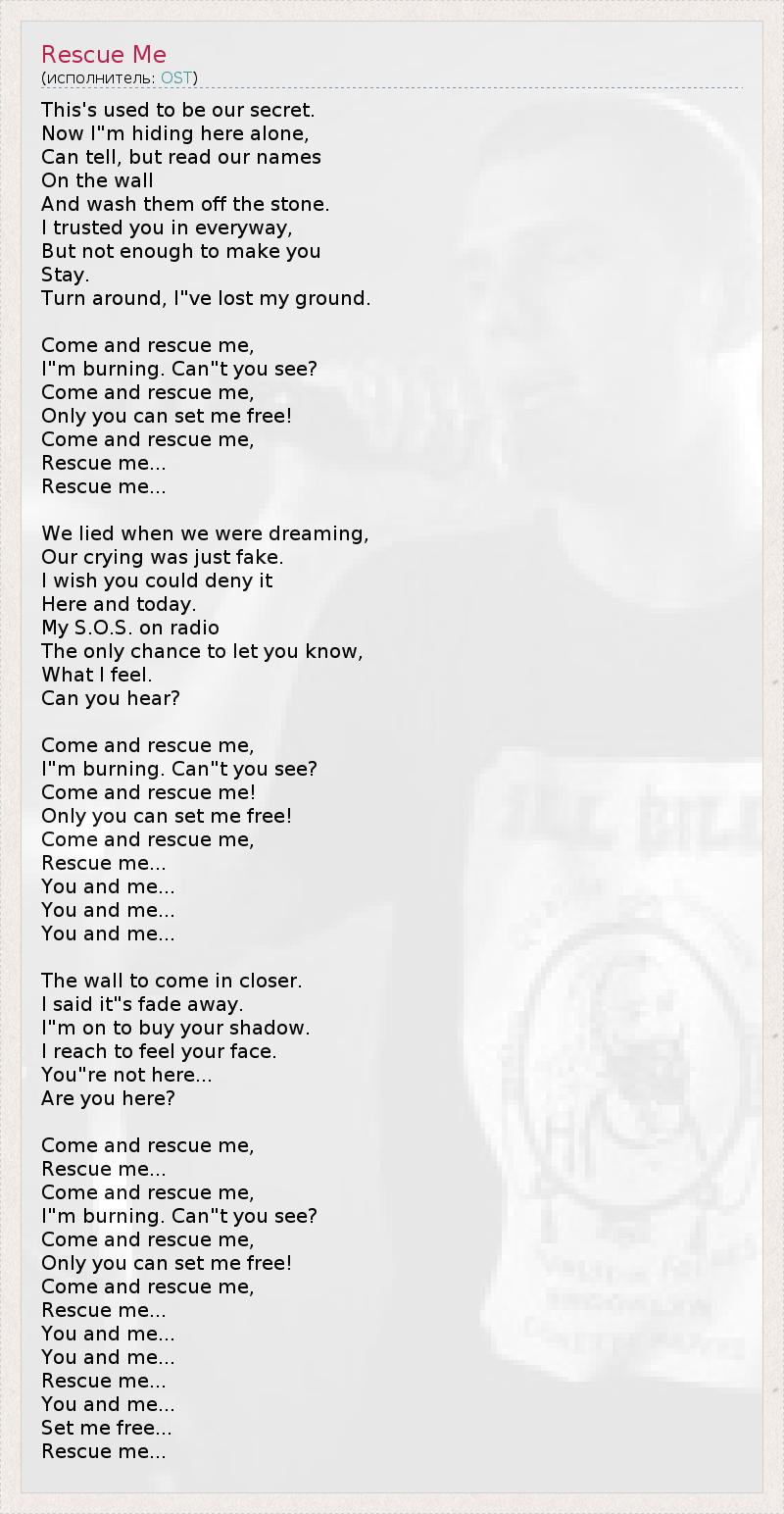 А как ты думаешь, о чем песня "Rescue Me" ?