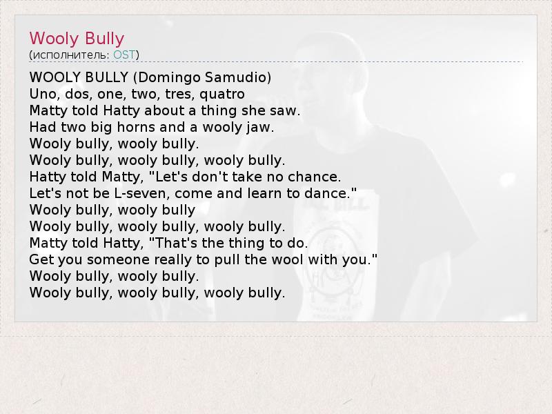 А как ты думаешь, о чем песня "Wooly Bully" ?