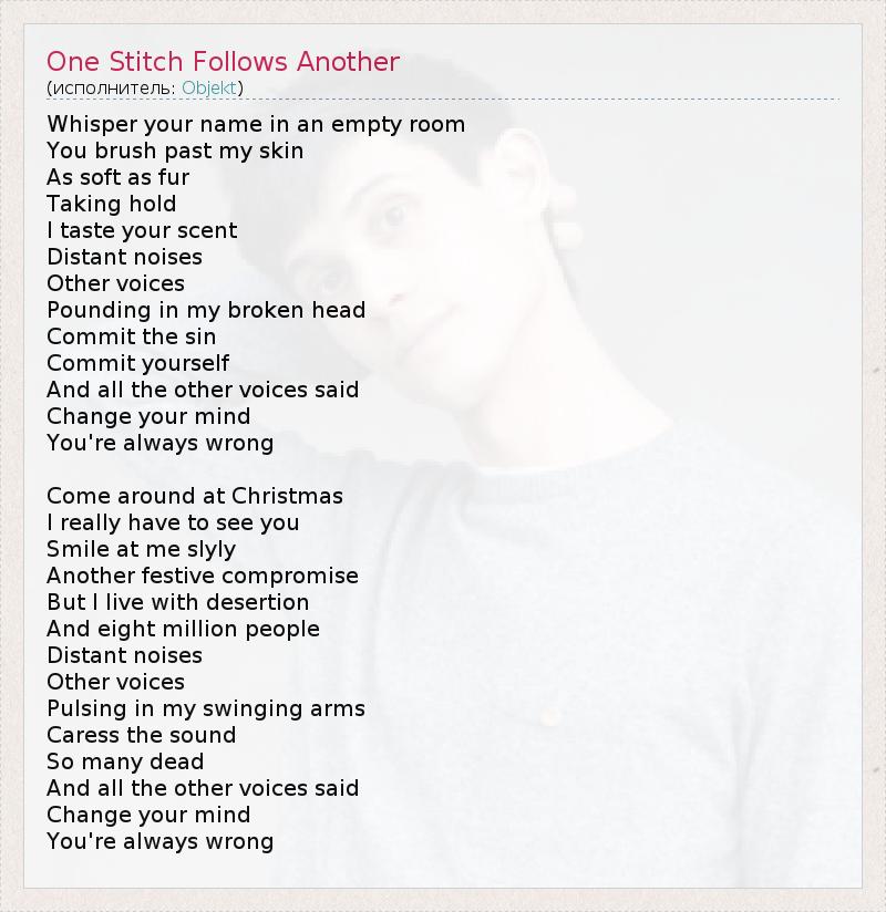 ГлавнаяИсполнителиObjektOne Stitch Follows Another