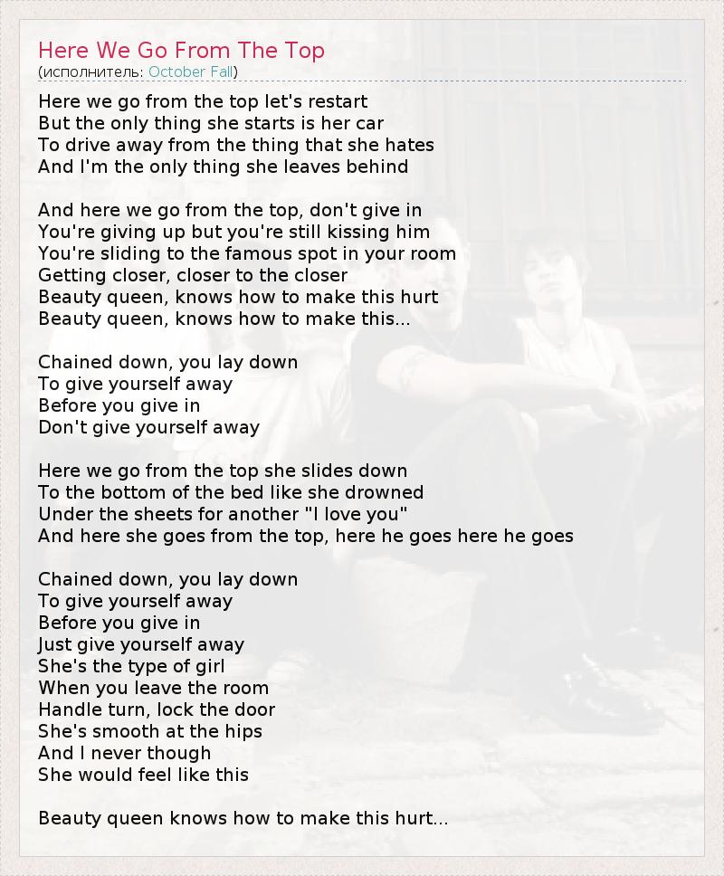 А как ты думаешь, о чем песня "Here We Go From The Top" ?