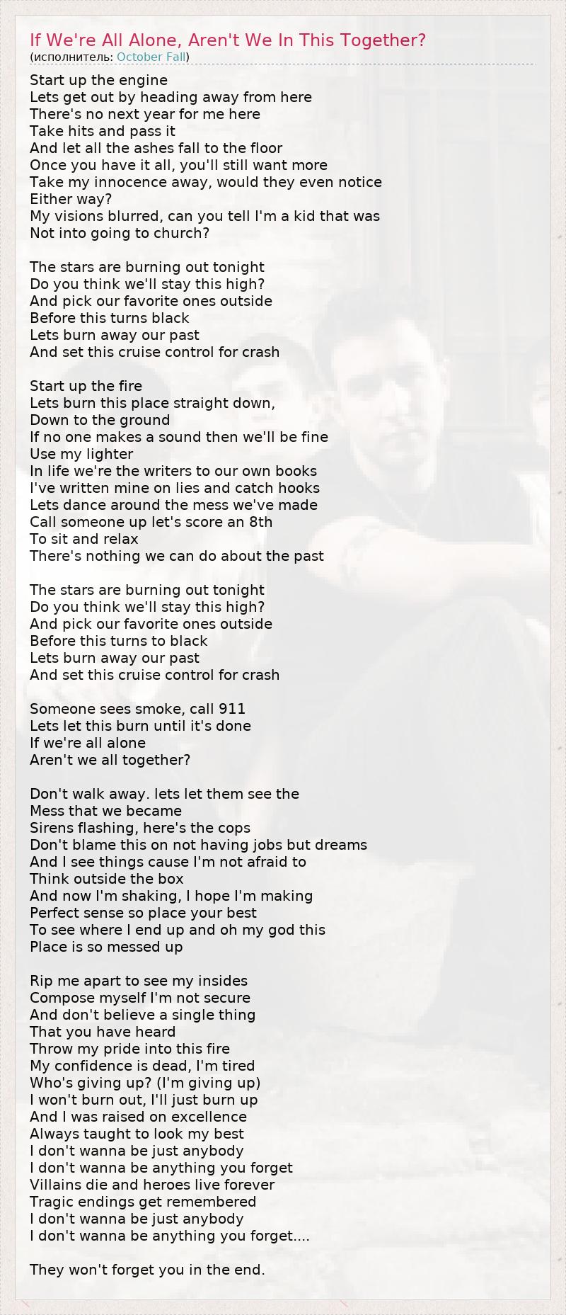 А как ты думаешь, о чем песня "If We're All Alone, Aren't We In This Together?" ?