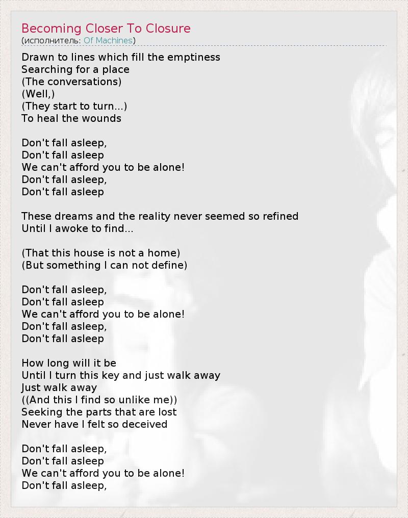 А как ты думаешь, о чем песня "Becoming Closer To Closure" ?
