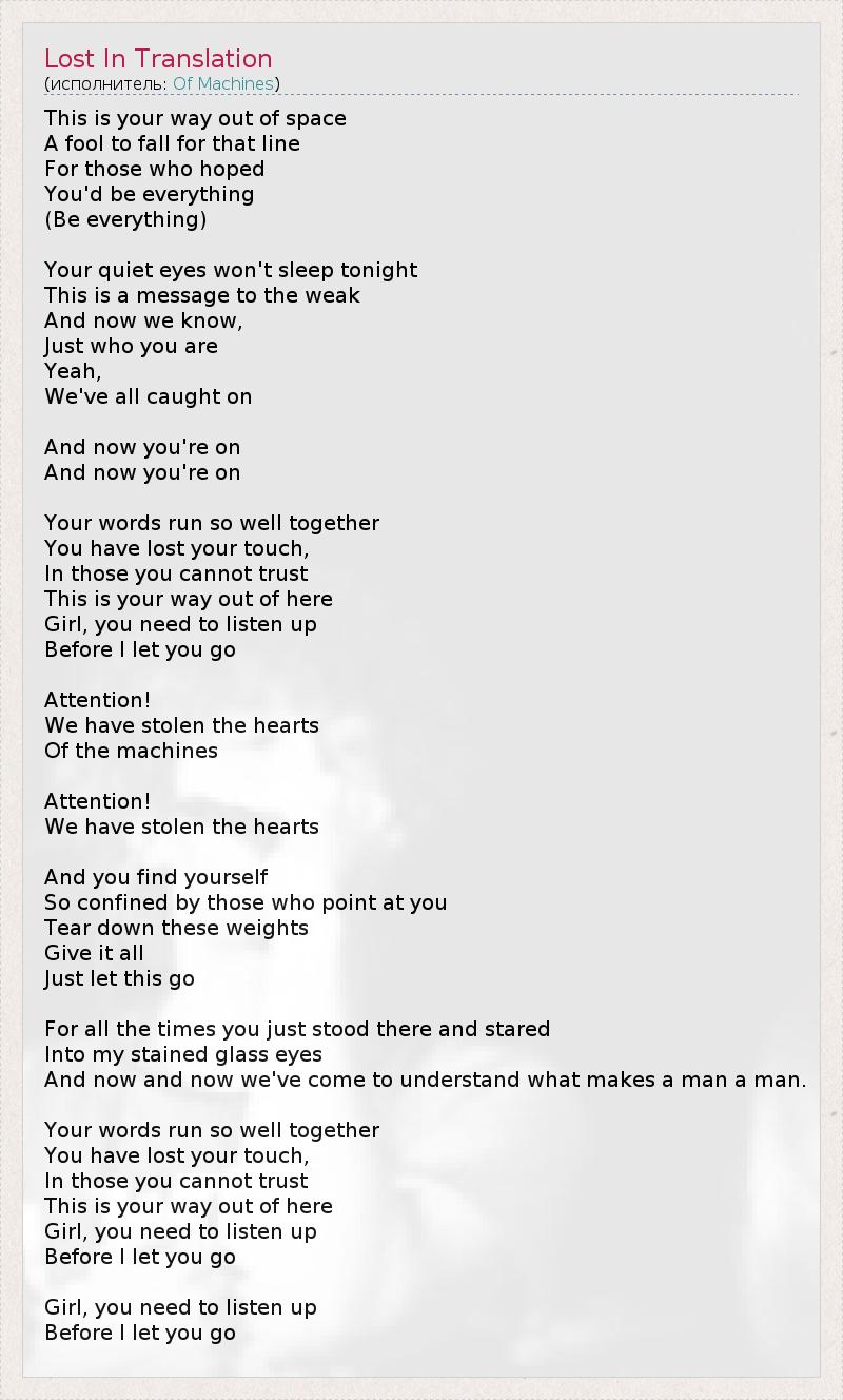 А как ты думаешь, о чем песня "Lost In Translation" ?