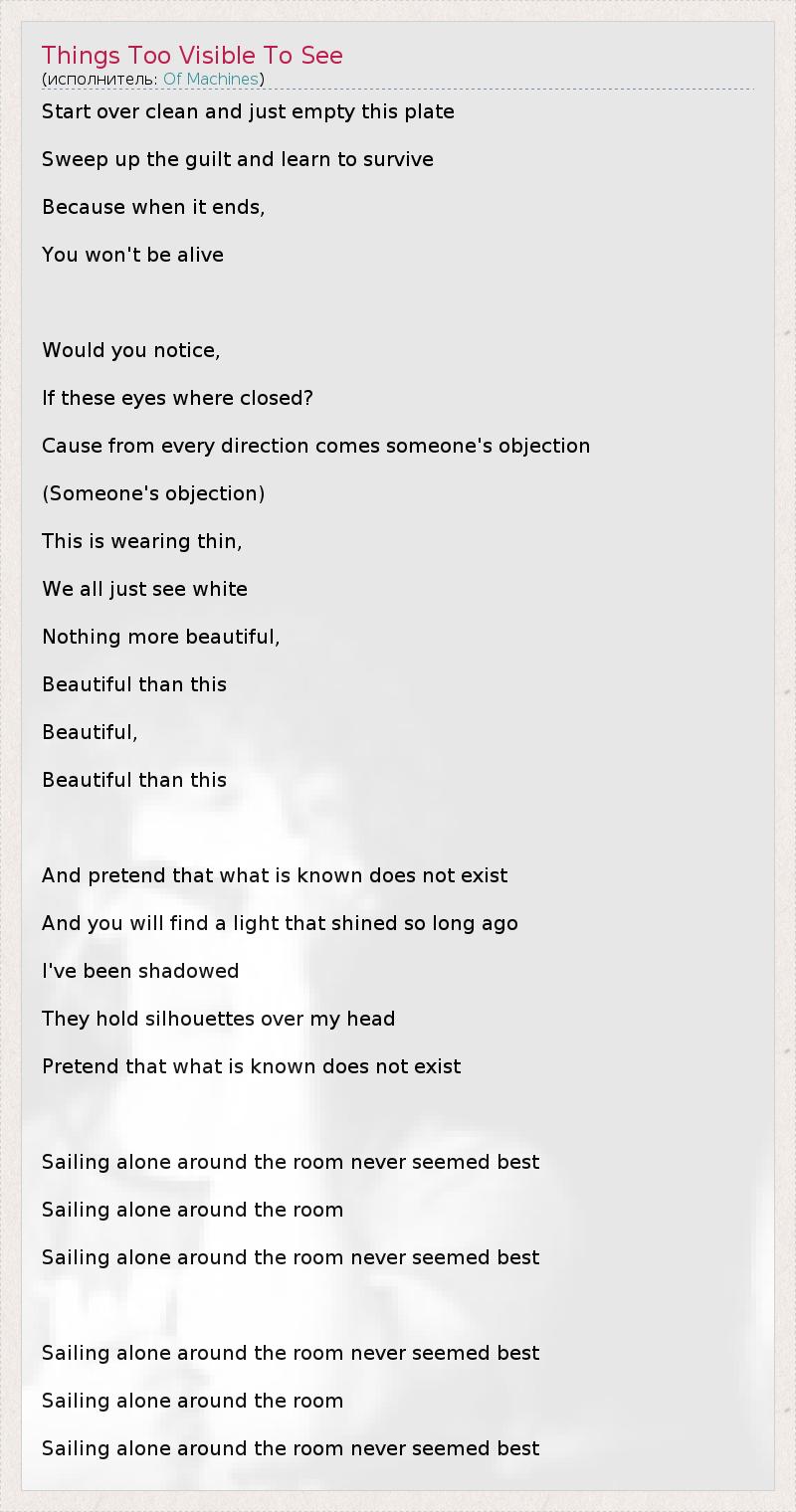 А как ты думаешь, о чем песня "Things Too Visible To See" ?