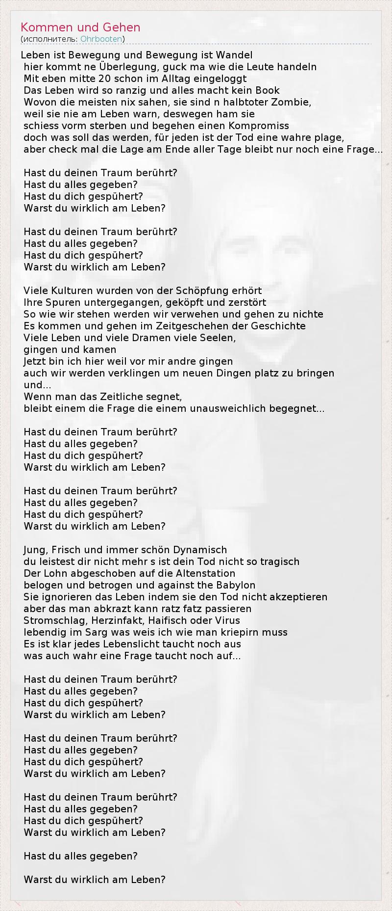 А как ты думаешь, о чем песня "Kommen und Gehen" ?