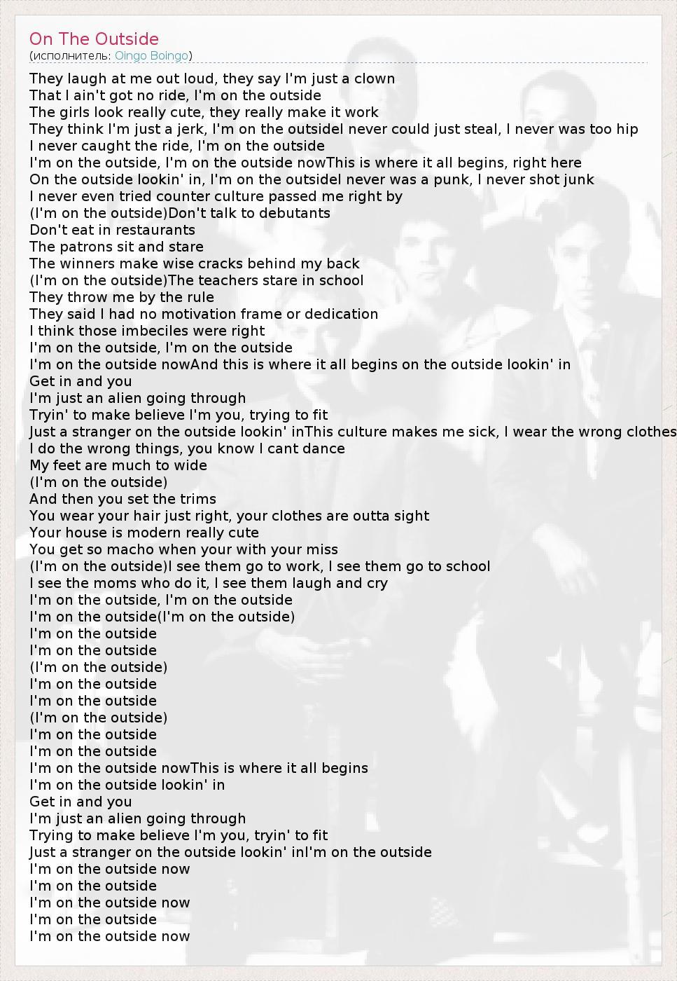 I'm on the outside nowAnd this is where it all begins on the outside lookin' in