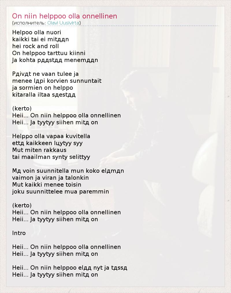 ГлавнаяИсполнителиOlavi UusivirtaOn niin helppoo olla onnellinen