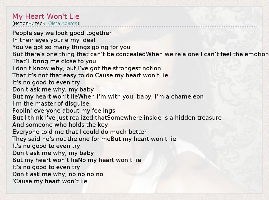 А как ты думаешь, о чем песня "My Heart Won't Lie" ?