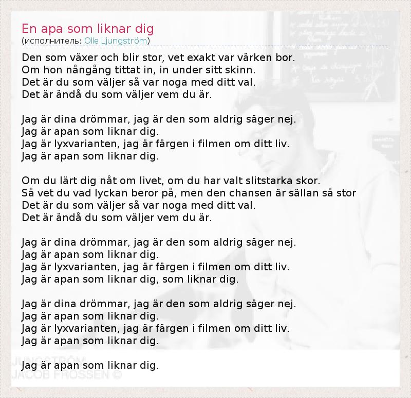 А как ты думаешь, о чем песня "En apa som liknar dig" ?