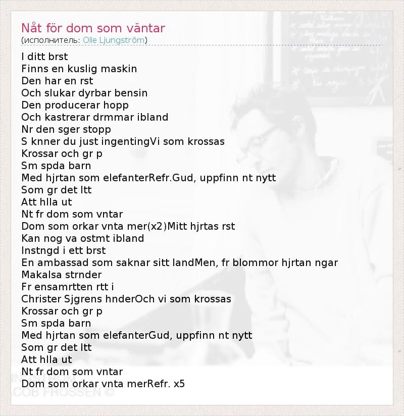 А как ты думаешь, о чем песня "Nåt för dom som väntar" ?