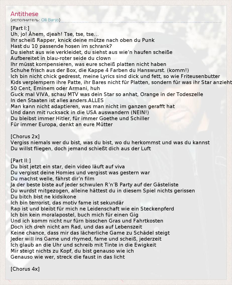 Ich bin nicht chick gedresst, meine Lyrics sind dick und fett, so wie Friteusenbutter